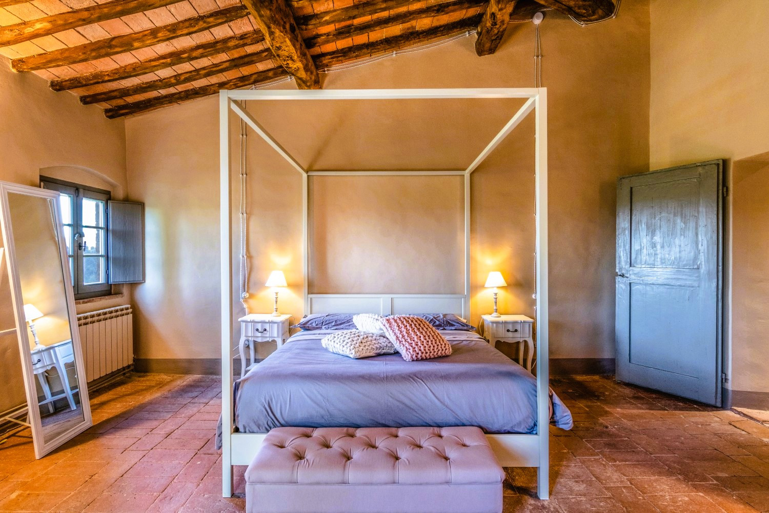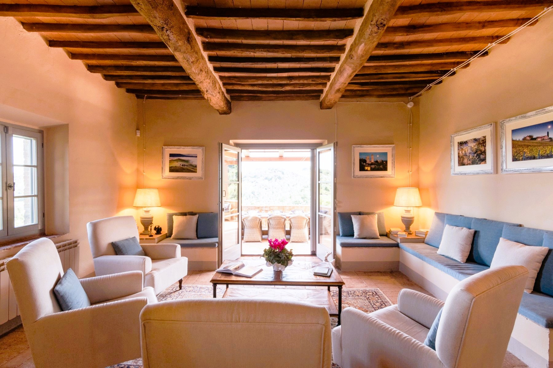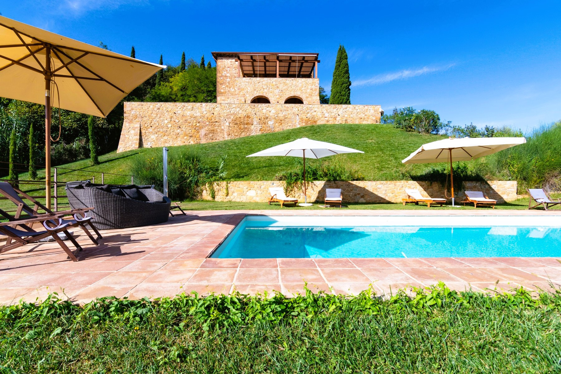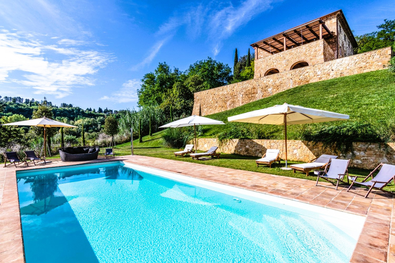 Située à proximité du prestigieux domaine de Castelfalfi, cette luxueuse villa peut accueillir jusqu'à 10 personnes. L'agencement comprend une chambre avec salle de bains privative au rez-de-chaussée, une chambre avec salle de bains attenante au premier étage et trois chambres au deuxième étage (dont une chambre avec un lit king-size ou deux lits jumeaux et une salle de bains privative, et deux chambres avec un lit queen-size partageant une salle de bains).