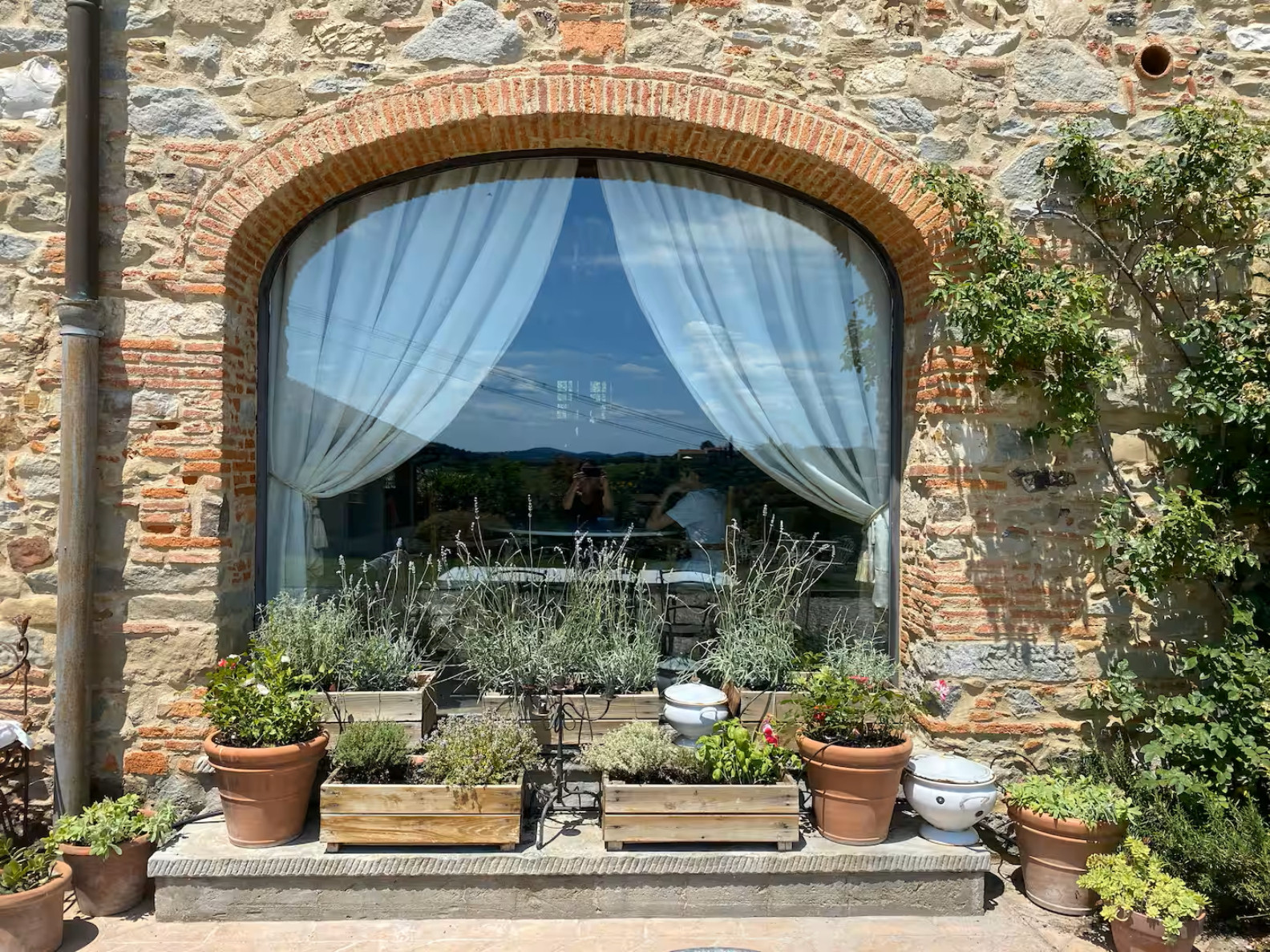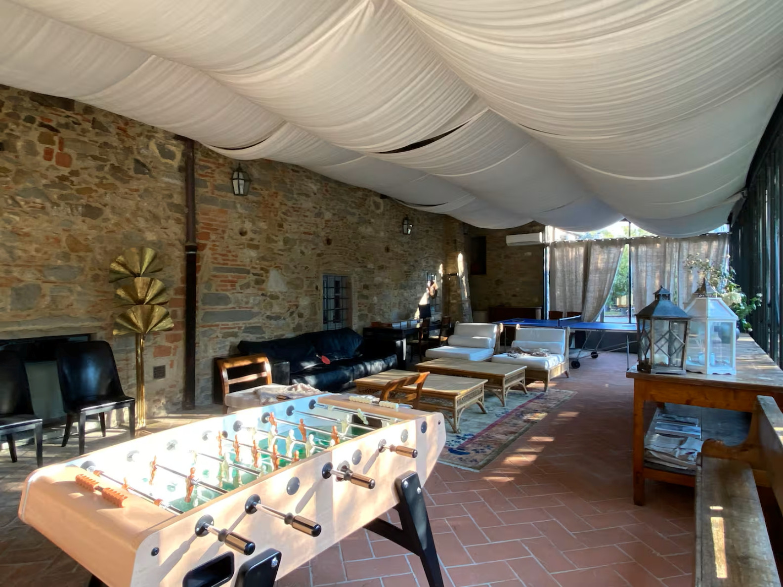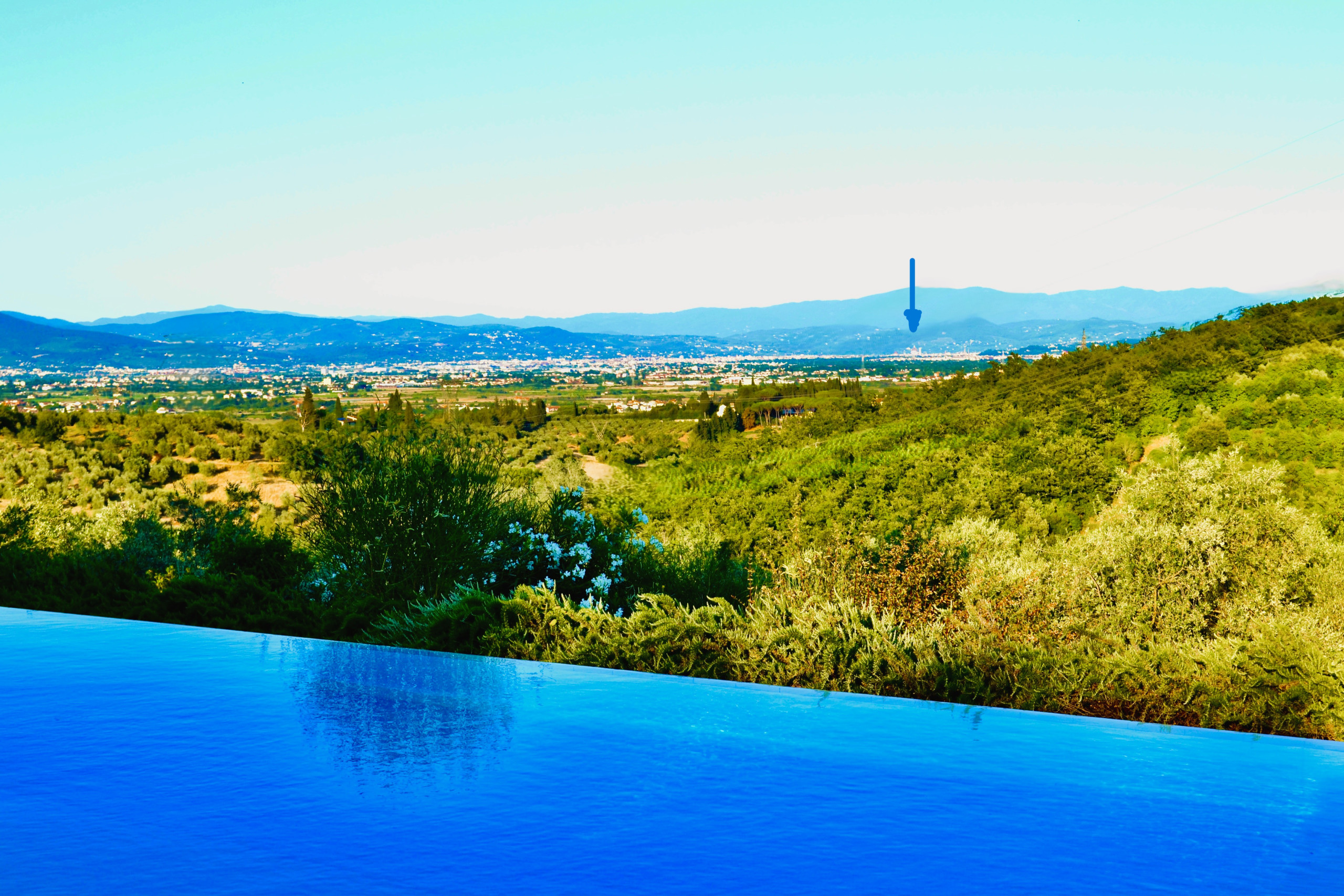 De buitenruimte wordt verfraaid door een overloopzwembad met een prachtig panoramisch uitzicht op Florence in de verte (inclusief de koepel en de klokkentoren van de Duomo).