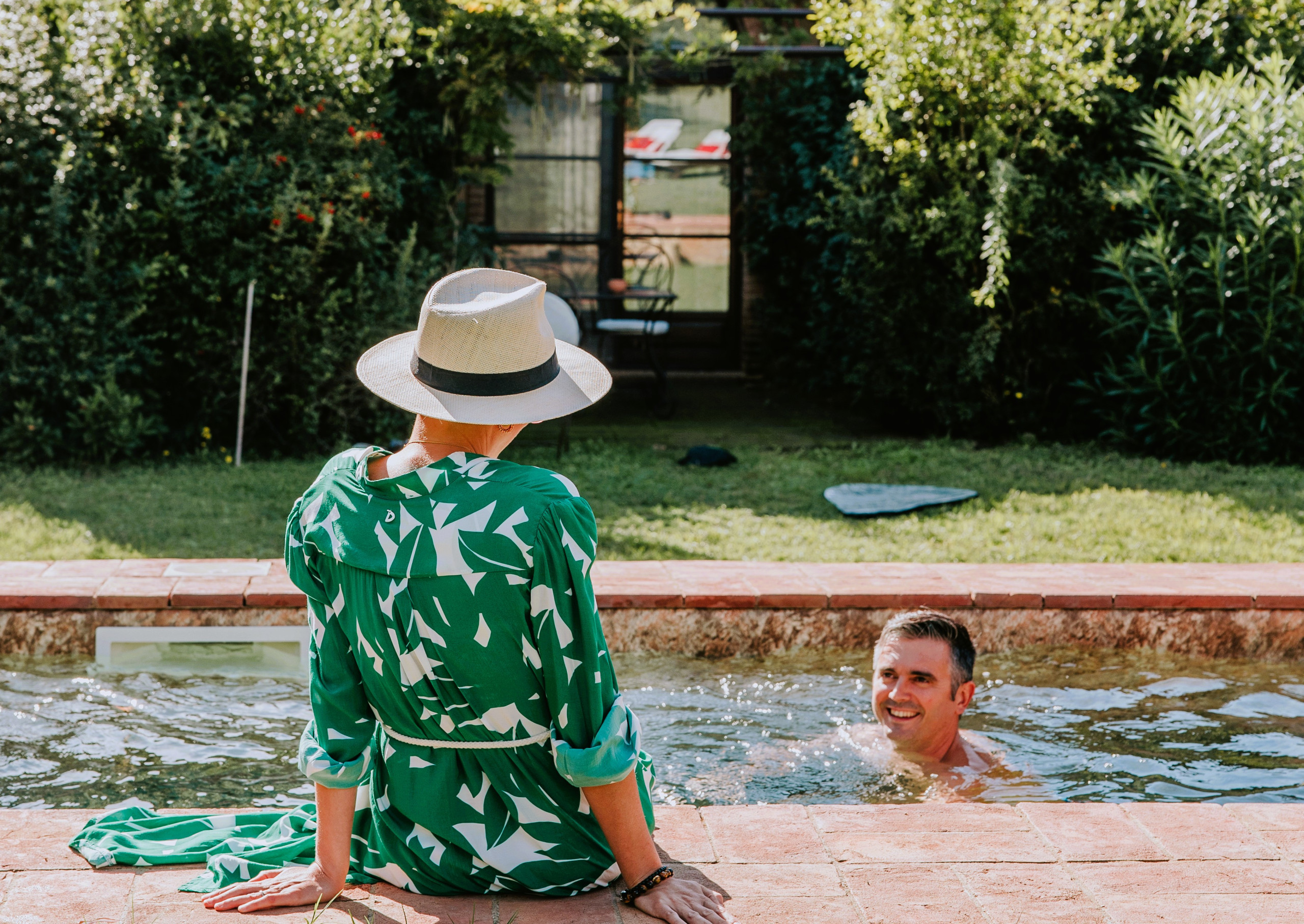 Elegant, all on the ground floor, with large windows overlooking the large garden and pool.
